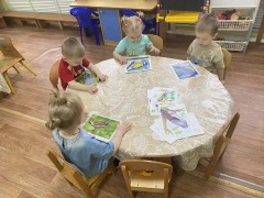 Дети вместе с воспитателем Петрухиной Е. В рассмотрели различные иллюстрации, играли в пальчиковую игру "Сорока- белобока", играли в подвижную игру" Птички в гнездышках".