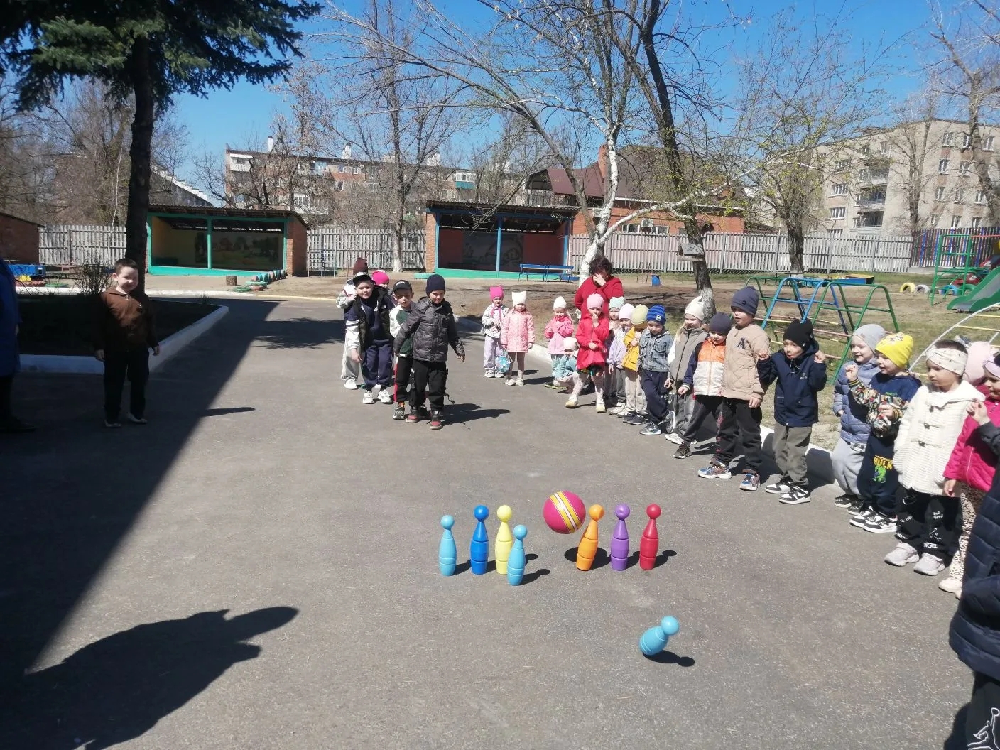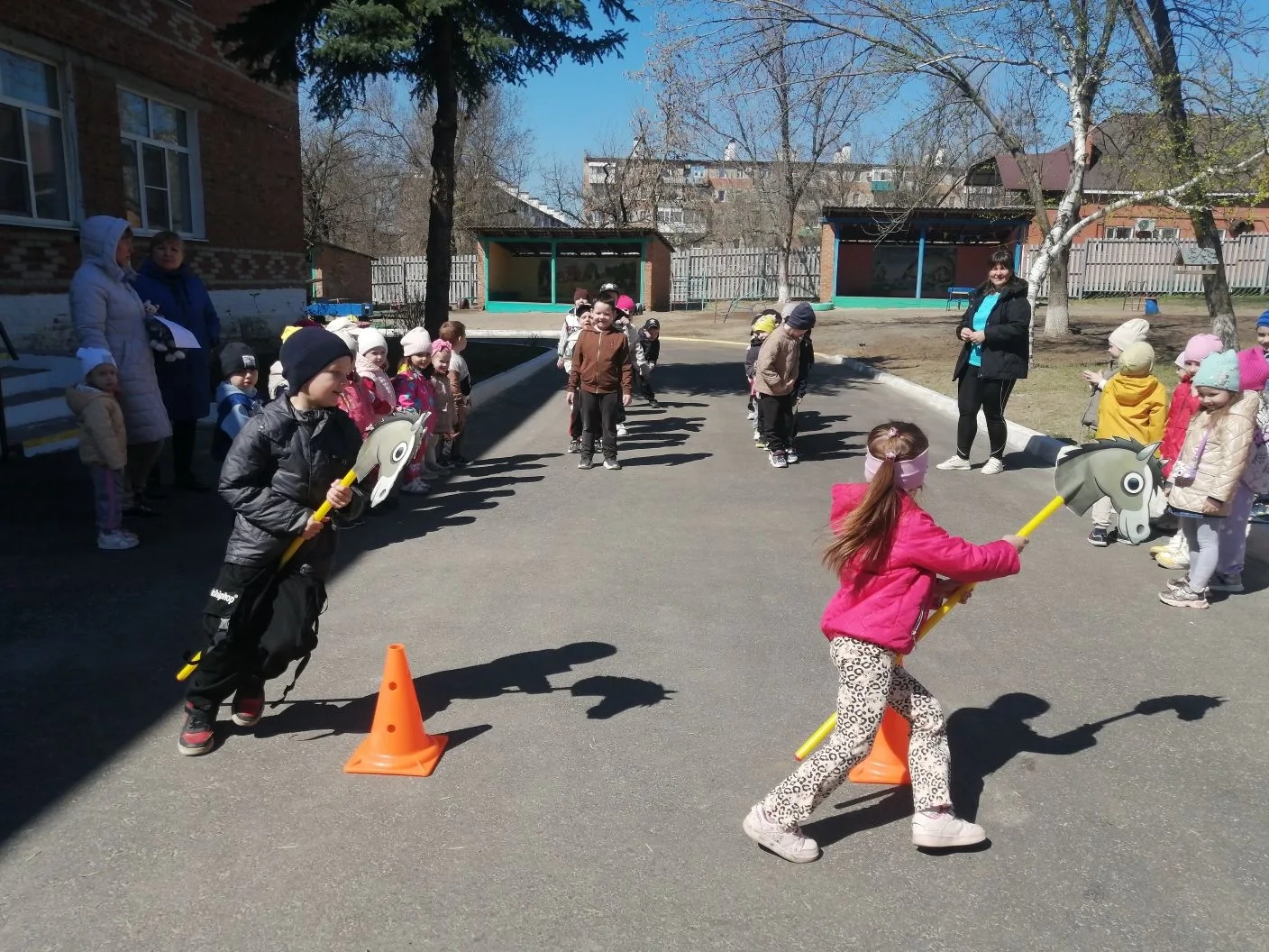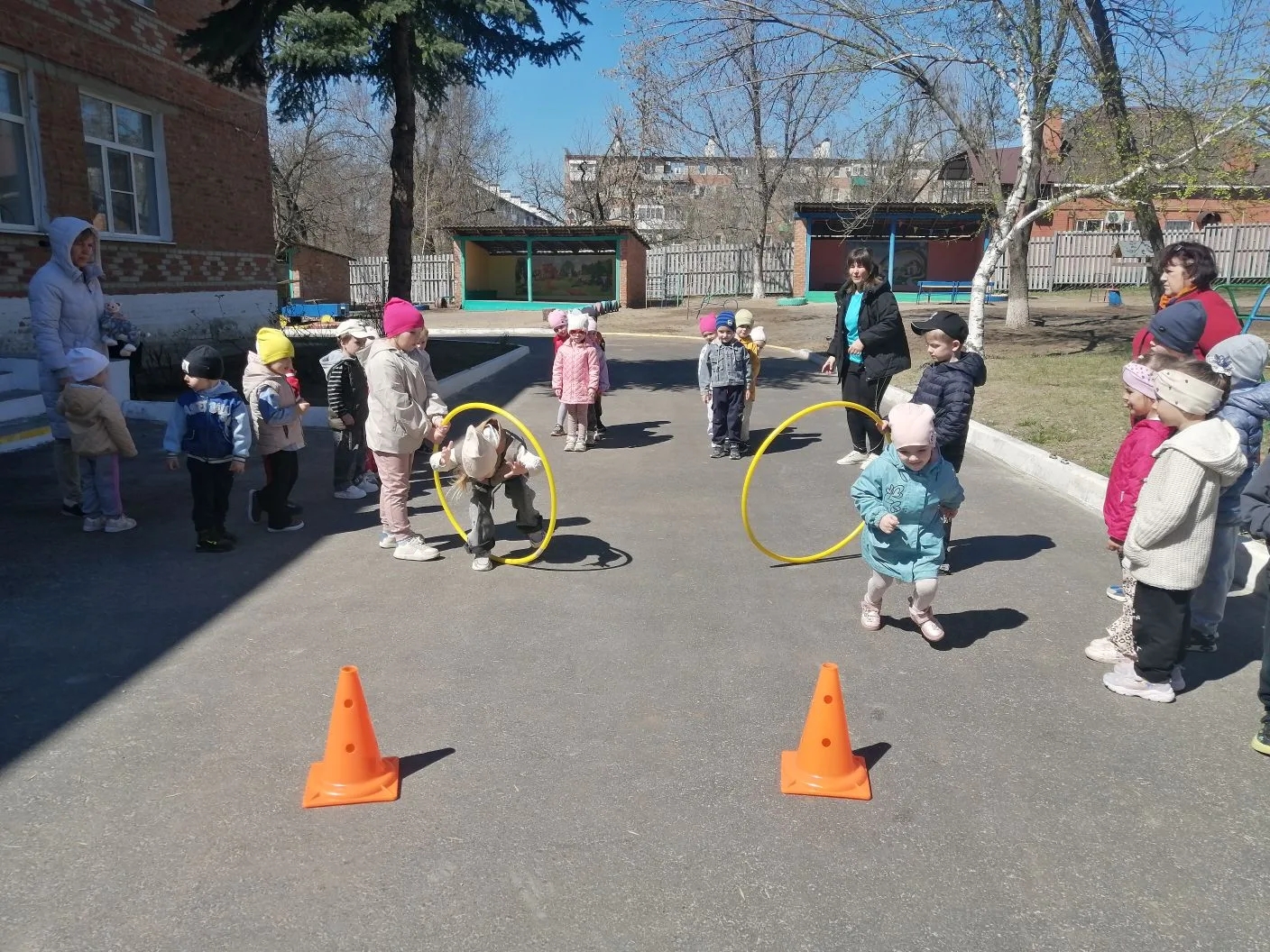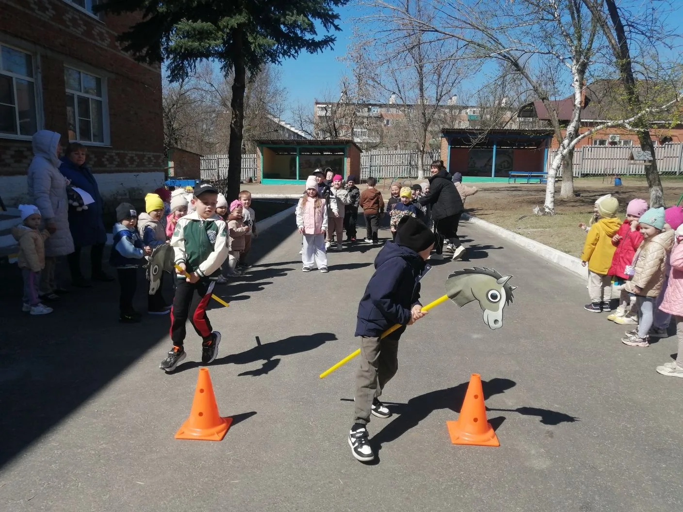 На свежем воздухе развернулись настоящие спортивные баталии! Ребята приняли участие в эстафетах: проявили ловкость, быстроту и, конечно, командный дух. Особенным моментом стала музыкальная пауза — игра «Поезд здоровья». Под весёлый перестук колёс «поезд» промчался по территории сада, объединив всех участников в одну большую дружную команду.