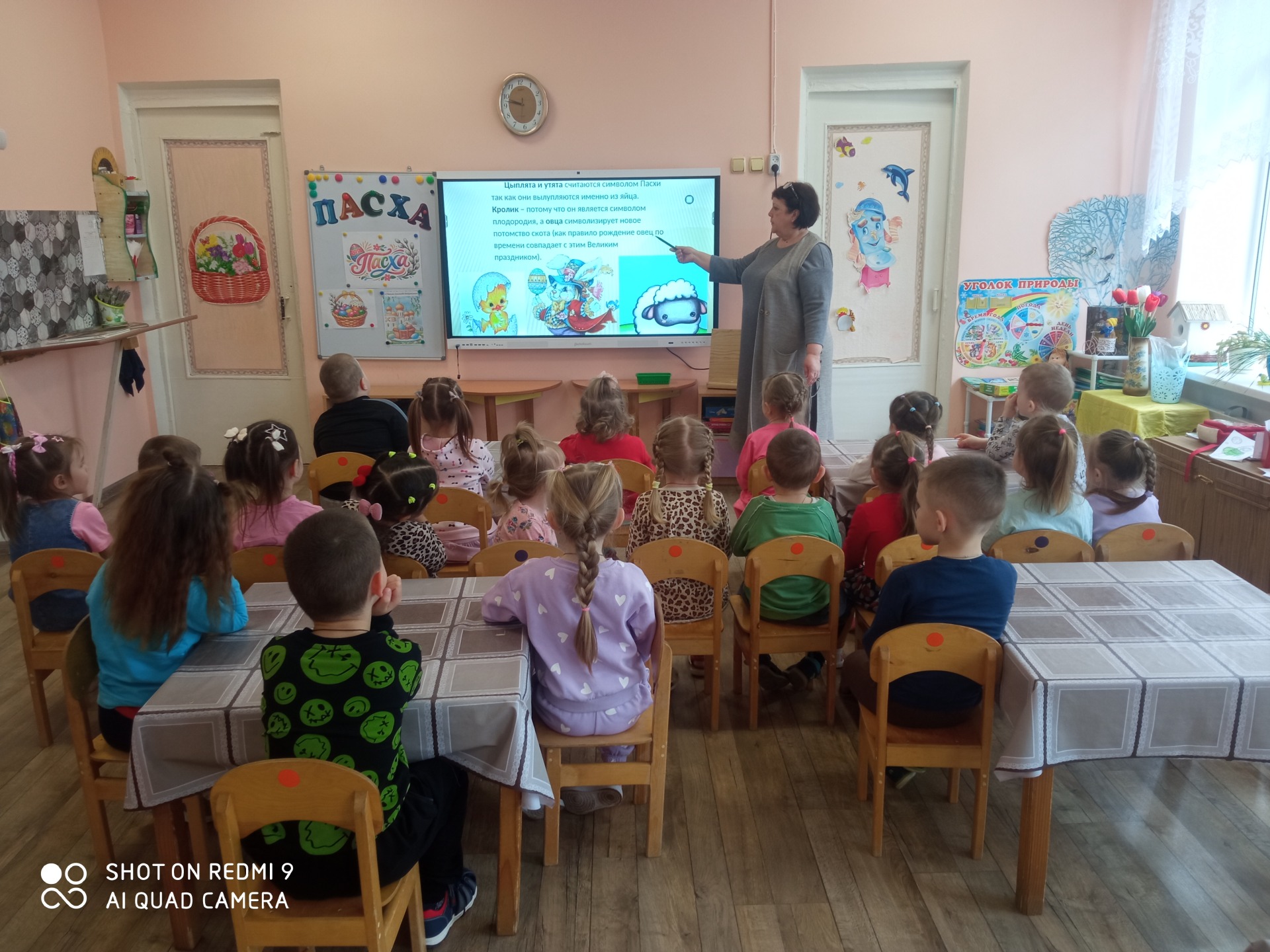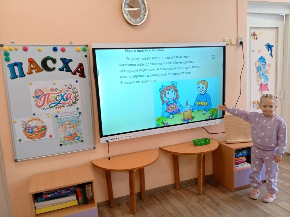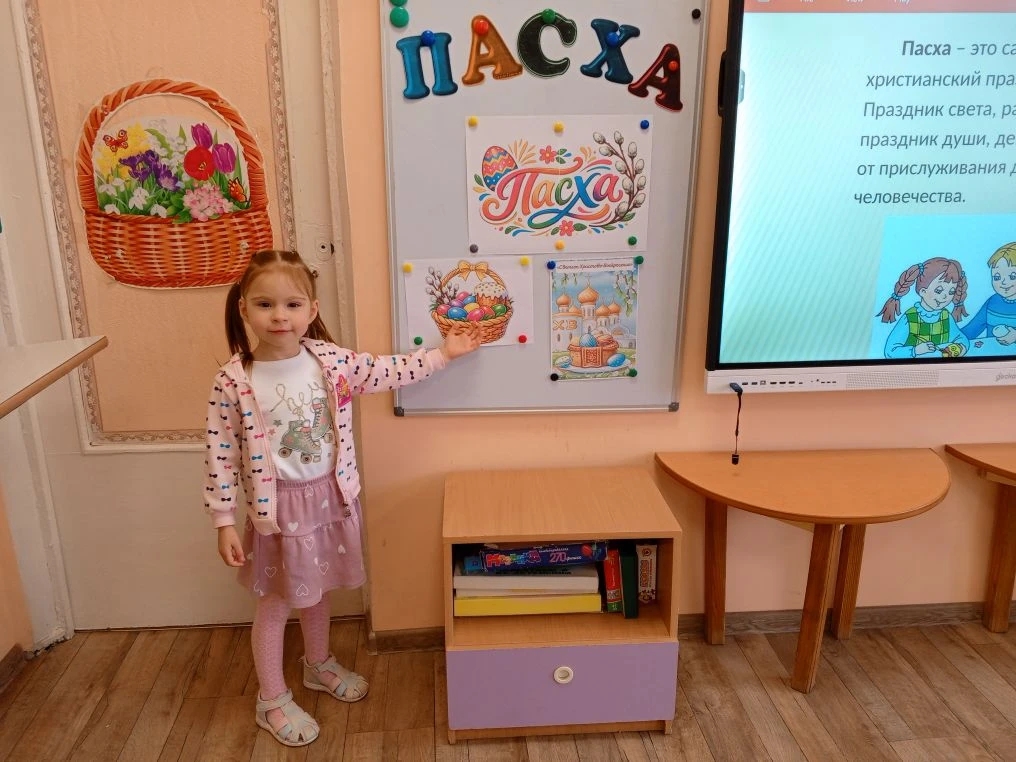 На этой неделе в средней группе «Пчёлки» и младшей группе «Теремок» прошло увлекательное занятие «Светлая Пасха». С помощью красочной презентации ребята отправились в путешествие по истории праздника: узнали, почему принято дарить крашеные яйца и какими символами наполнена пасхальная неделя.