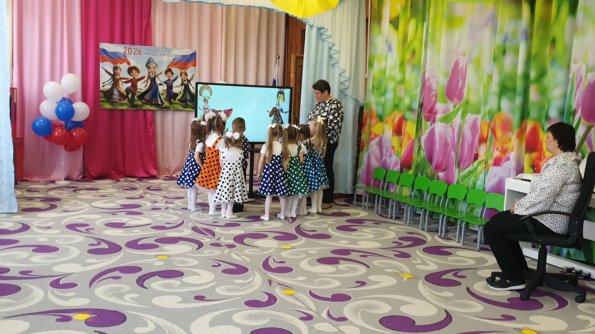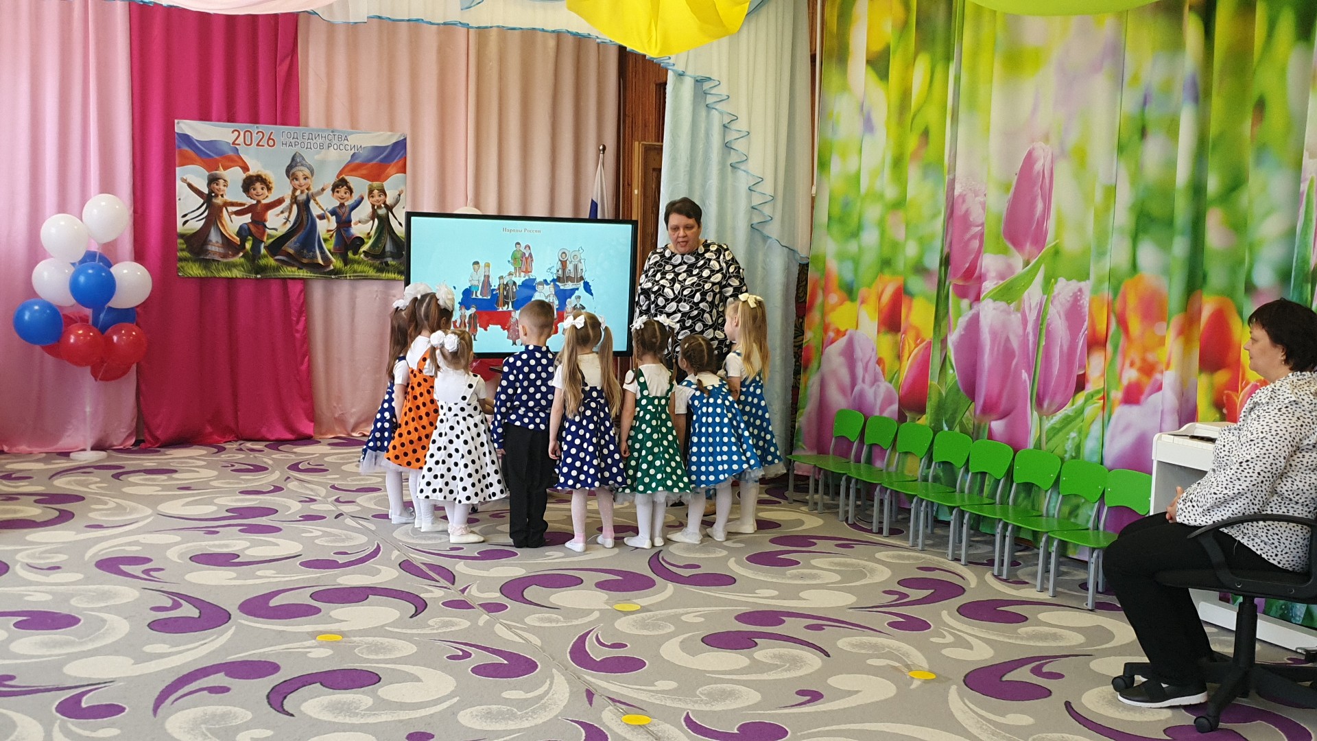 В рамках недели педагогического мастерства в средней группе «Пчёлки» состоялось увлекательное занятие, посвящённое теме «Единение народов России». Воспитатель Попова С.А. и музыкальный руководитель Плюхина Е.Н. подготовили для ребят насыщенную программу, раскрывшую глубокое понятие «единство» через игру, музыку и творчество.