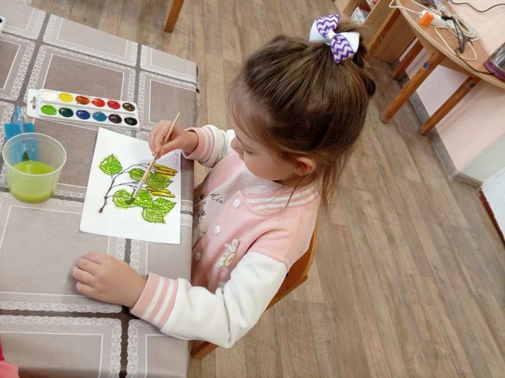 Творческим завершением дня стало рисование. Малыши старательно раскрашивали березовые веточки, стараясь передать их изящество. Каждая работа получилась по-своему нежной и неповторимой.