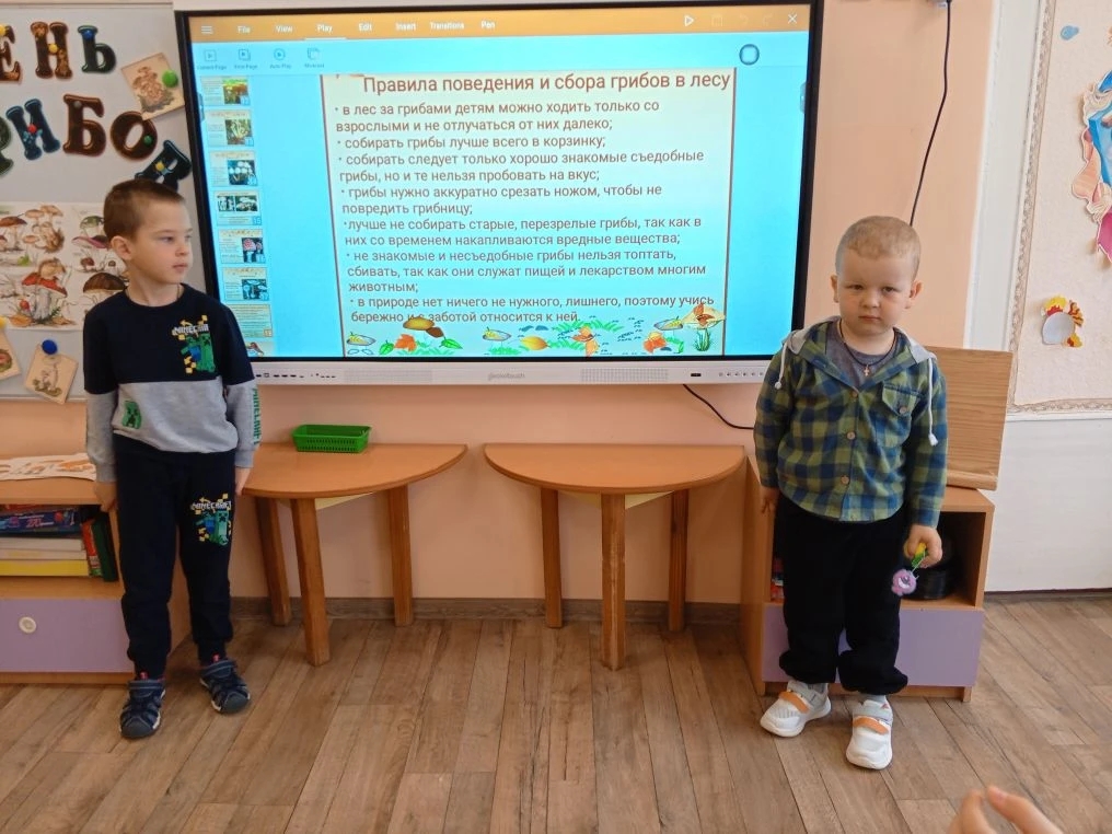 Вместе с гостем ребята погрузились в мир природы: исследовали строение гриба и узнали, чем отличаются съедобные виды от несъедобных. Обсудили, какую важную роль грибы играют в жизни леса и почему некоторые из них могут быть опасны. Запомнили главные правила грибника, чтобы прогулки по лесу были безопасными.