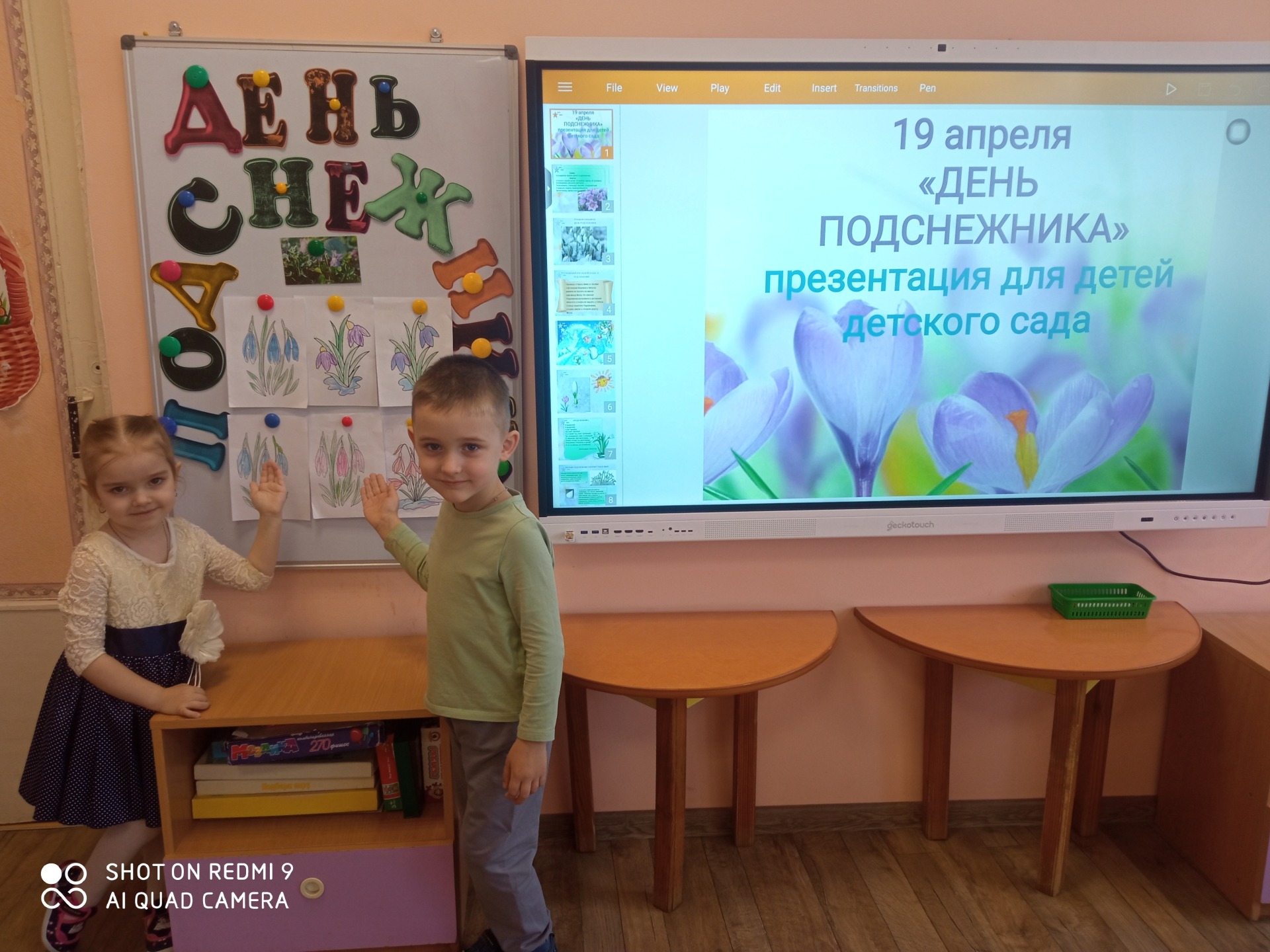 Ежегодно 19 апреля отмечается День подснежника. В этот день прошло совместное тематическое мероприятие в младшей группе " Теремок" и в средней группе " Пчёлки" посвящённое этому празднику. Воспитатель Попова С. А. подготовила презентацию, где дети познакомились с этим замечательным экологическим праздником. Они рассматривали картинки с весенними пейзажами, играли в игру " Кто больше назовёт весенних примет", " Что сначала, что потом? "