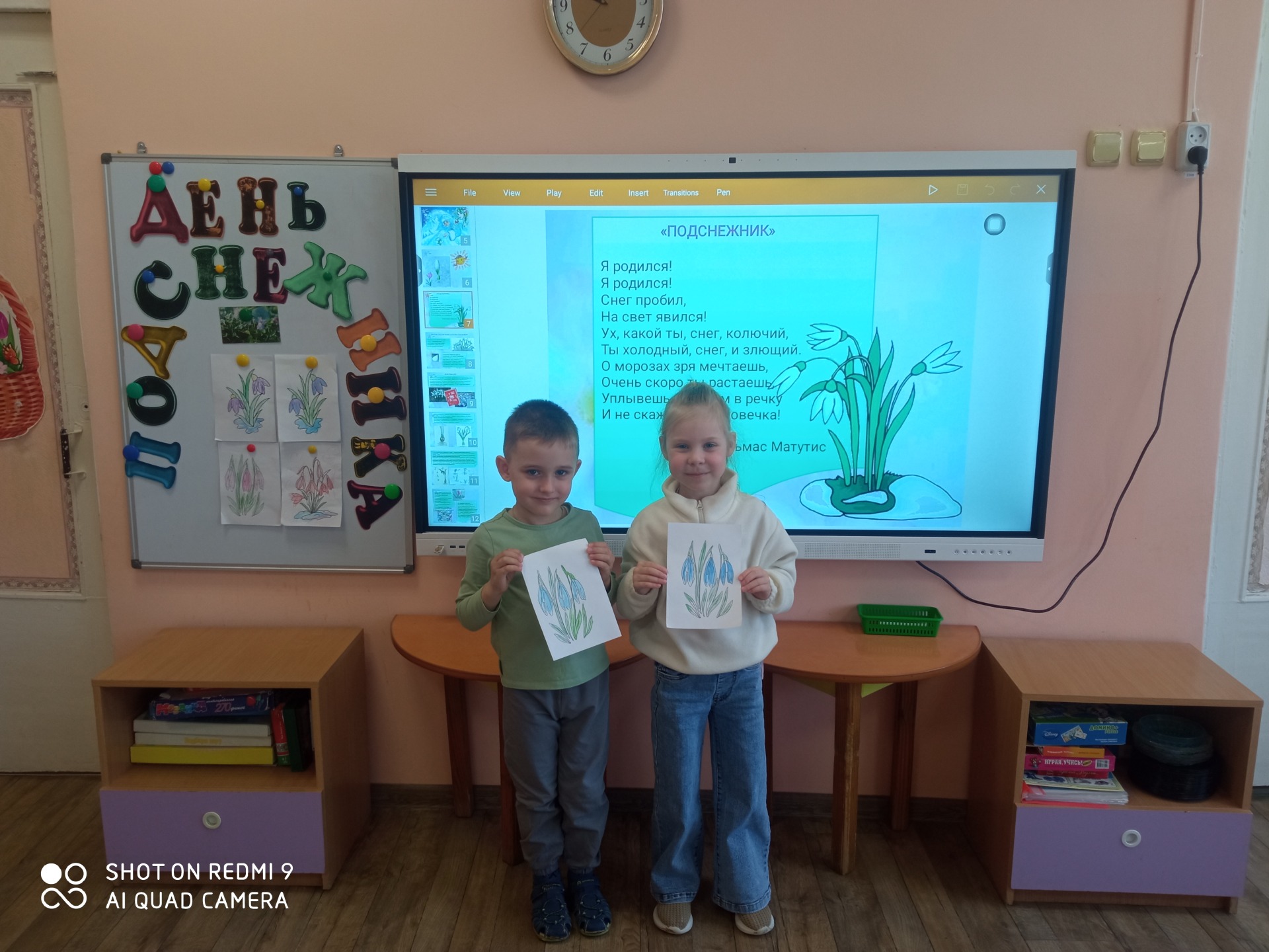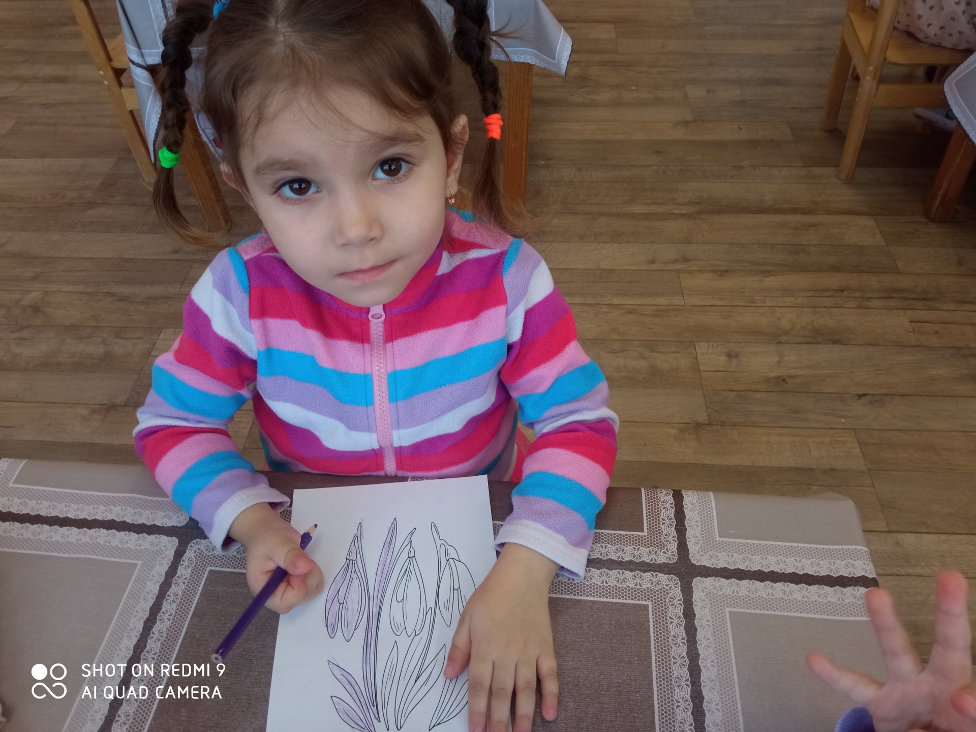 А самое главное дети уяснили, что подснежники занесены в Красную книгу. Поэтому надо беречь красоту природы и не рвать первоцветы! В конце мероприятия дети выполнили творческую работу- раскрасили раскраски с изображением подснежника.