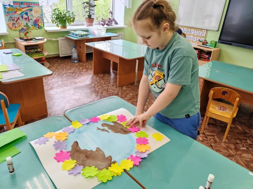 Свой призыв беречь природу дети воплотили в искусстве. Каждый подготовил авторский рисунок, а кульминацией дня стало создание масштабной стенгазеты. Эта коллективная работа объединила идеи ребят о гармонии человека и окружающей среды.