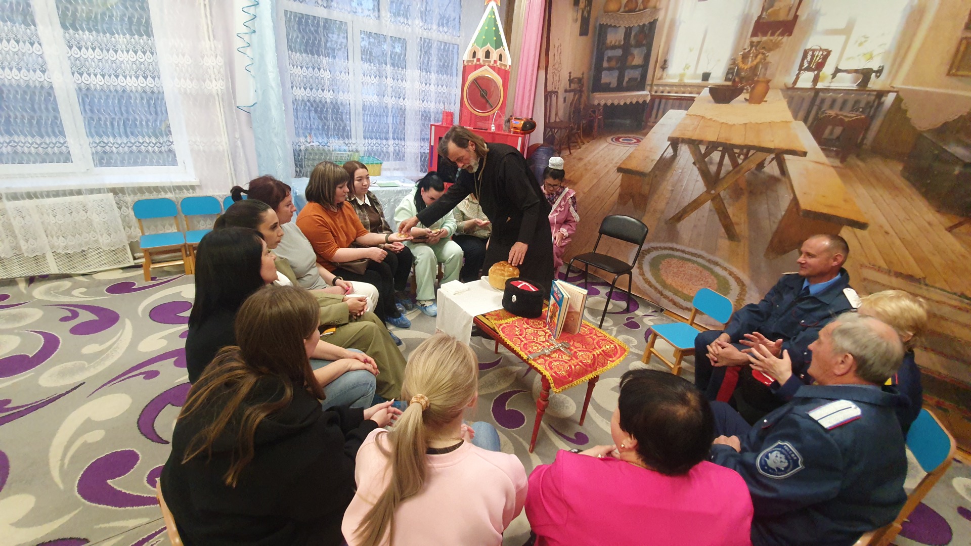 В этот раз к обсуждению присоединились почетные гости: Настоятель храма Иконы Божьей Матери «Неопалимая Купина» отец Александр и представители местного казачества.