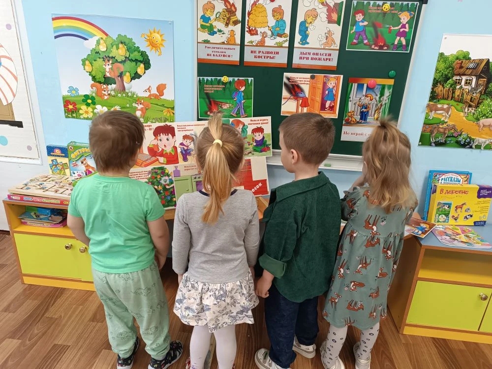 В течение тематического дня педагог провела с дошколятами познавательные беседы: «Если возник пожар» — дети узнали алгоритм действий в экстренной ситуации; «Добрый и злой огонь» — ребята обсудили, как огонь помогает человеку и какую опасность таит в себе при неосторожном обращении; «Знает каждый гражданин — нужный номер 01» — малыши закрепили в памяти главный телефон спасения.